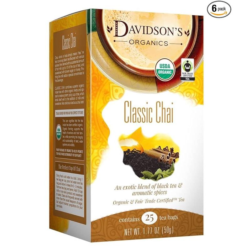 Davidson's Organics, Classic Chai, 25-count Tea Bags, Pack of 6