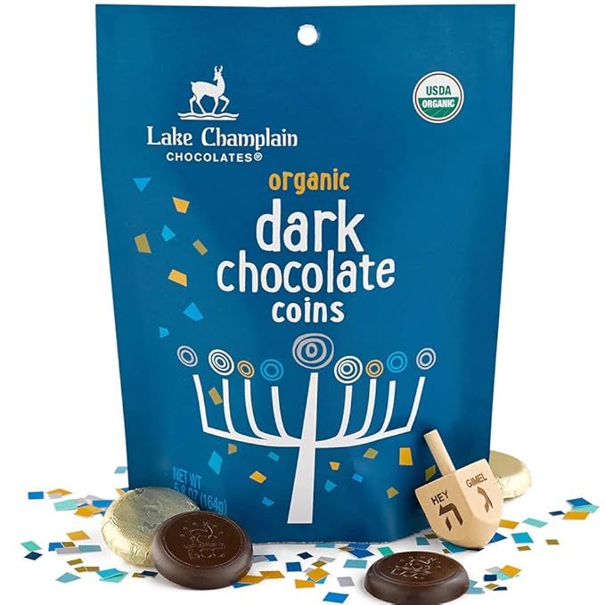 LAKE CHAMPLAIN CHOCOLATES Organic Hanukkah Dark Chocolate Coin Bag, 5.8 OZ