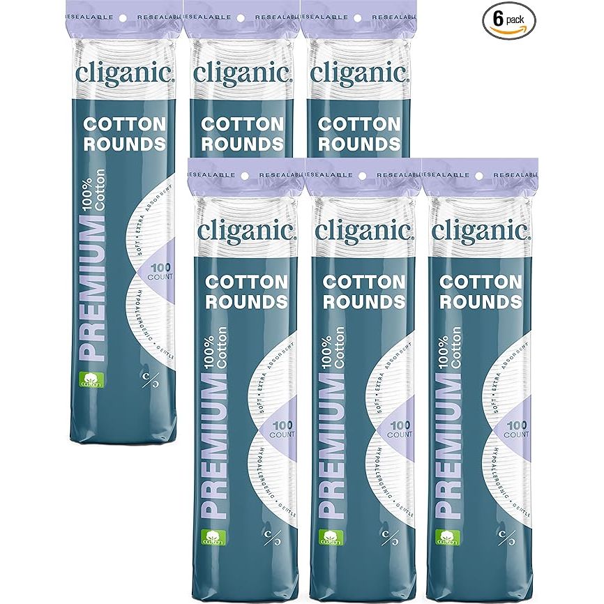 Cliganic Premium Cotton Rounds are makeup remover pads made from 100% pure cotton. They are hypoallergenic and lint-free, making them gentle on the skin and perfect for removing makeup without irritating the skin. The pack contains 6 packs of cotton rounds, providing a convenient and economical option for daily use.