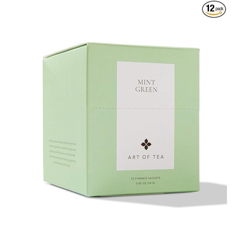 Art of Tea | Mint Green Tea | 12 Count Pyramid Tea Bag Sachets