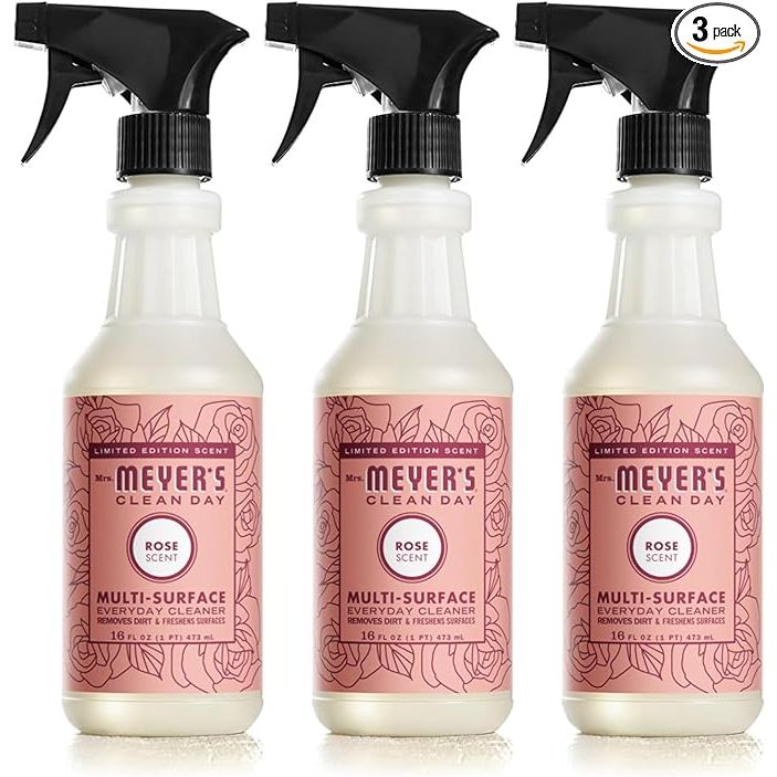 Mrs. Meyer's Clean Day All-Purpose Cleaner Spray is a versatile, plant-based cleaner that effectively removes dirt and grime from various surfaces. This Limited Edition Rose scent adds a touch of floral freshness to your cleaning routine. Each pack contains three 16 fl. oz spray bottles, providing ample product for multiple cleaning tasks around the home.