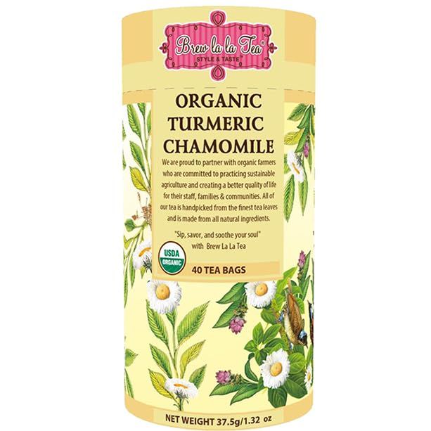 Brew La La Turmeric Chamomile Organic Herbal Tea-40 Tea Bag Canister-Caffeine Free