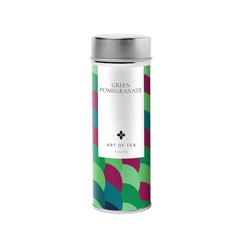 Art of Tea's Organic Green Pomegranate Green Tea is a blend of premium green tea leaves and natural pomegranate flavors, creating a refreshing and antioxidant-rich beverage. The loose leaf tea is packaged in a 2.5oz tin, making it convenient to store and use for multiple servings.