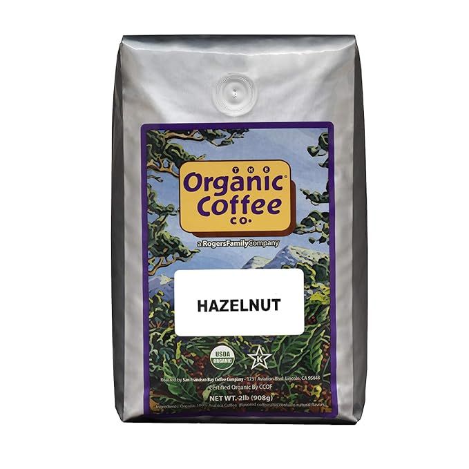 The Organic Coffee Co. Whole Bean Coffee - Hazelnut Crème (2lb Bag), Flavored, Medium Roast, USDA Organic