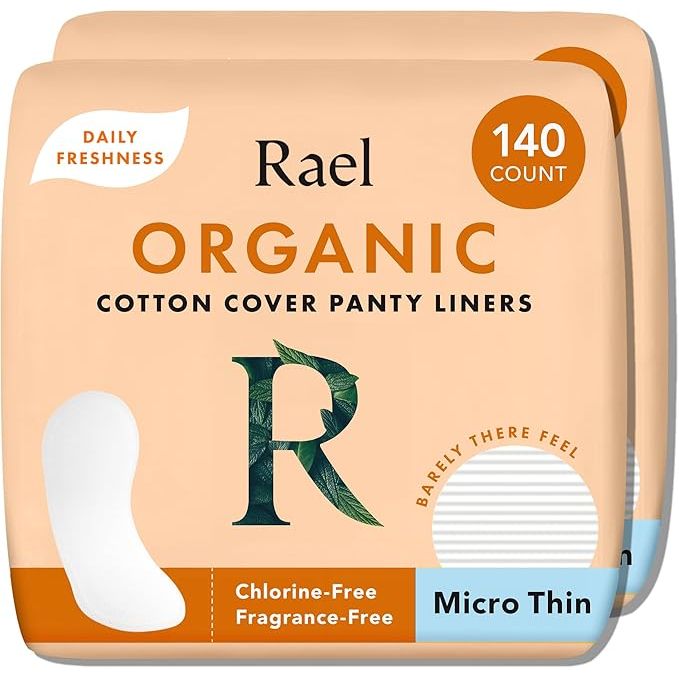 Rael Panty Liners for Women are thin, organic cotton pantiliners designed for light absorbency. Made with a chlorine-free process, these panty liners are gentle on the skin and free from harmful chemicals. They are unscented, making them suitable for those with sensitive skin or allergies.