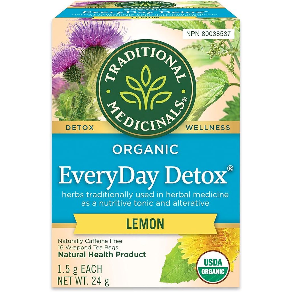 By incorporating Traditional Medicinals Organic Everyday Detox Lemon Herbal Tea into your routine, you can support your body's natural detoxification processes and promote overall wellness. This herbal tea is caffeine-free and organic, making it a healthy choice for those looking to aid their body in removing accumulated waste and toxins. Description by ChatGPT.