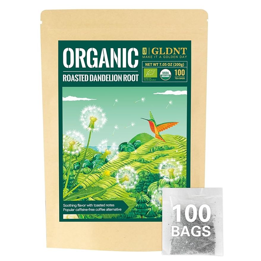 Whether you are looking for a caffeine-free alternative to traditional tea or coffee, or simply want to enjoy the potential health benefits of dandelion root tea, GLDNT Organic Roasted Dandelion Root Tea Bags are a great choice. With 100 tea bags per box, you can easily enjoy a cup of this premium organic tea anytime, anywhere. Description by ChatGPT.