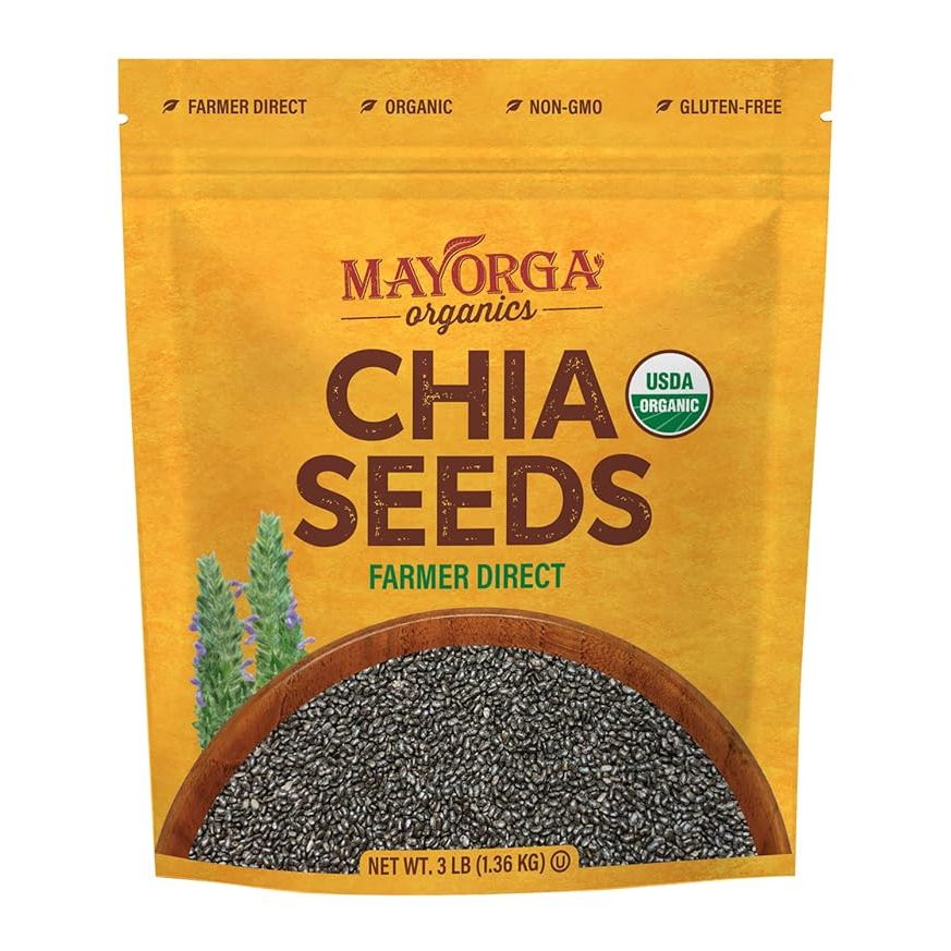 Mayorga Organic Raw Chia Seeds, 3lb Resealable Bag | Superfood w/Plant-Based Omega 3 & Vegan Protein | USDA Certified, Gluten-Free, Non-GMO, Direct Trade, Kosher | Add to Breakfast, Oats & More