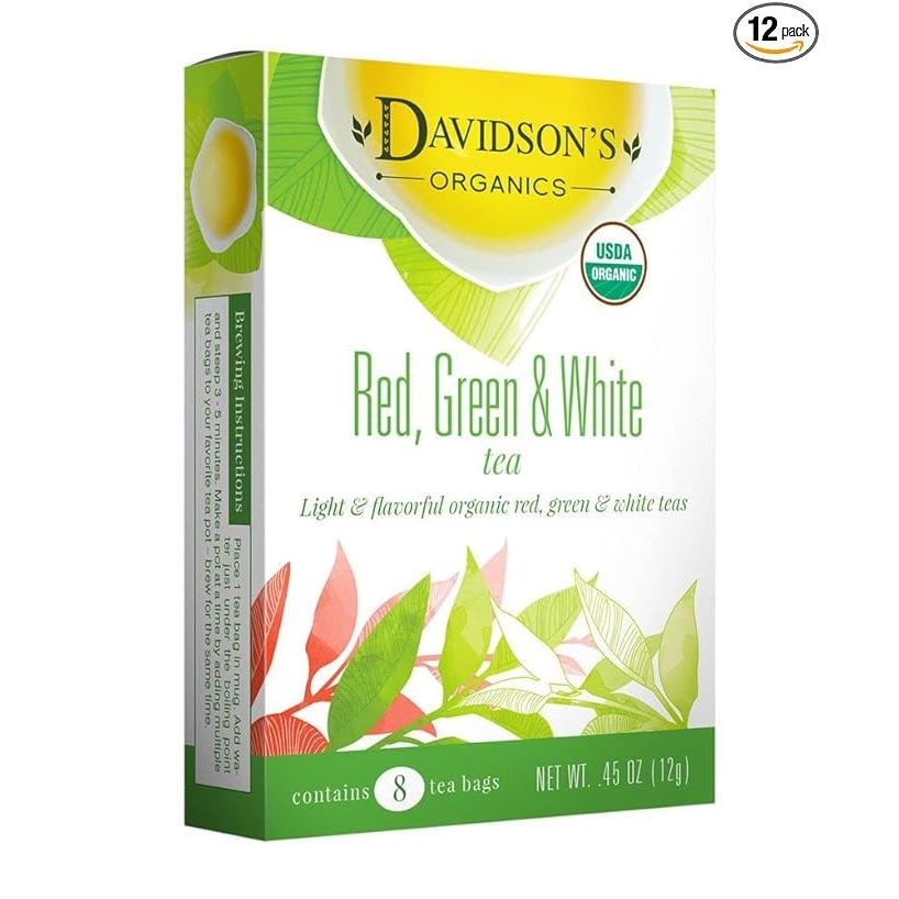 Davidson's Organics prides itself on sourcing high-quality ingredients from organic and ethically responsible farms. Their tea bags are also compostable, making them a sustainable choice for tea lovers who care about the environment. Overall, Davidson's Organics Red, Green, and White Tea 8-count Tea Bags offer a flavorful and healthful tea-drinking experience in a convenient and eco-friendly packaging. Description by ChatGPT.