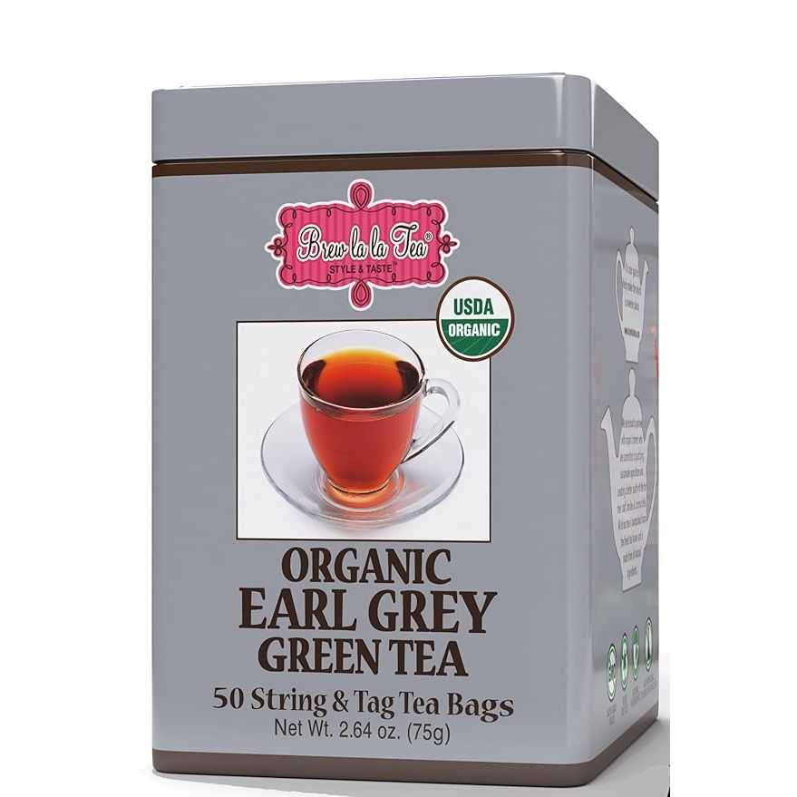 Brew La La Organic Earl Grey Green Tea is a premium tea made with high-quality organic ingredients. This tea is a unique blend of green tea infused with bergamot oil, which gives it a refreshing and citrusy flavor. The tea comes in a convenient 50 tea bag tin, making it easy to enjoy at home or on the go.