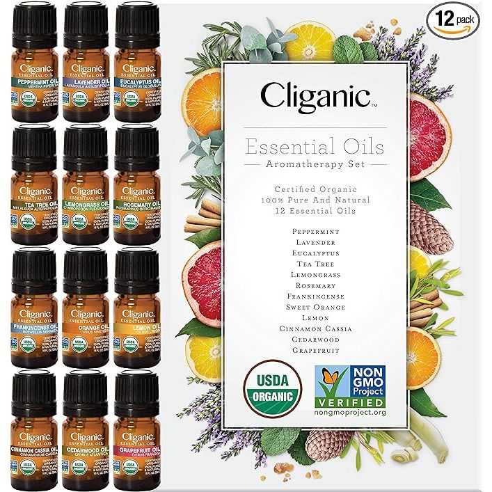 Cliganic USDA Organic Aromatherapy TOP 12 Essential Oils Set, 100% Pure - Peppermint, Lavender, Eucalyptus, Tea Tree, Lemongrass, Rosemary, Frankincense, Orange, Lemon, Cassia, Cedarwood & Grapefruit