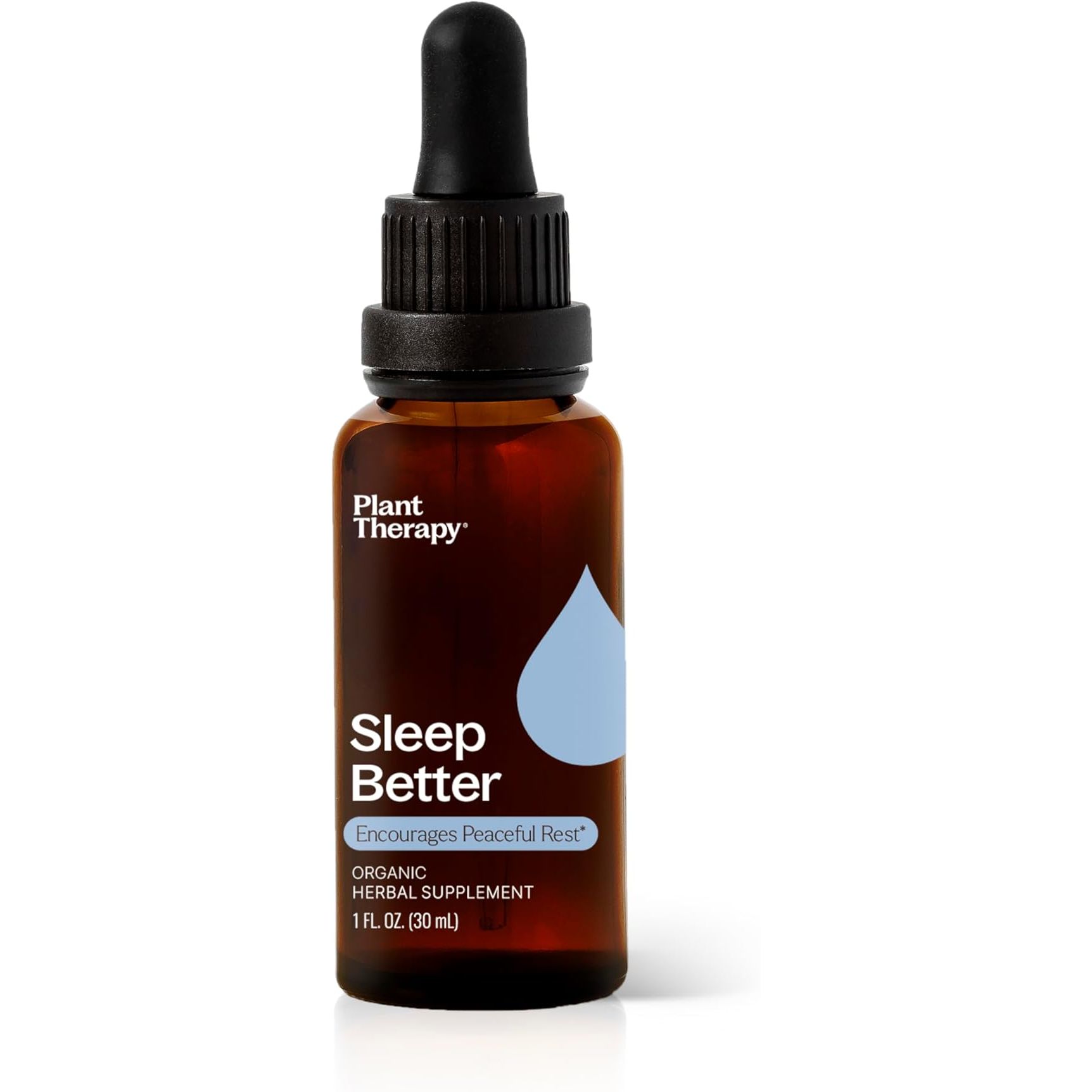 Plant Therapy Organic Sleep Better Tincture is a natural, plant-based supplement designed to help promote relaxation and better sleep. This blend of chamomile, lemon balm, and valerian extracts is known for its calming and sedative properties, making it a great option for those struggling with a busy mind or difficulty falling asleep.