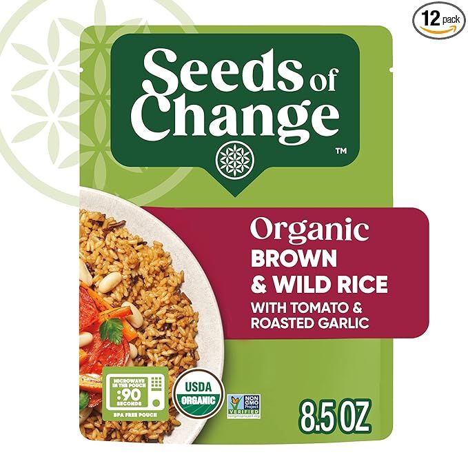 Seeds Of Change Organic Brown & Wild Rice with Tomato & Roasted Garlic, Good Source of Fiber, No Artificial Ingredients or Preservatives, Vegetarian Friendly, USDA Certified Organic, Non-GMO, 8.5 Ounce (Pack of 12)