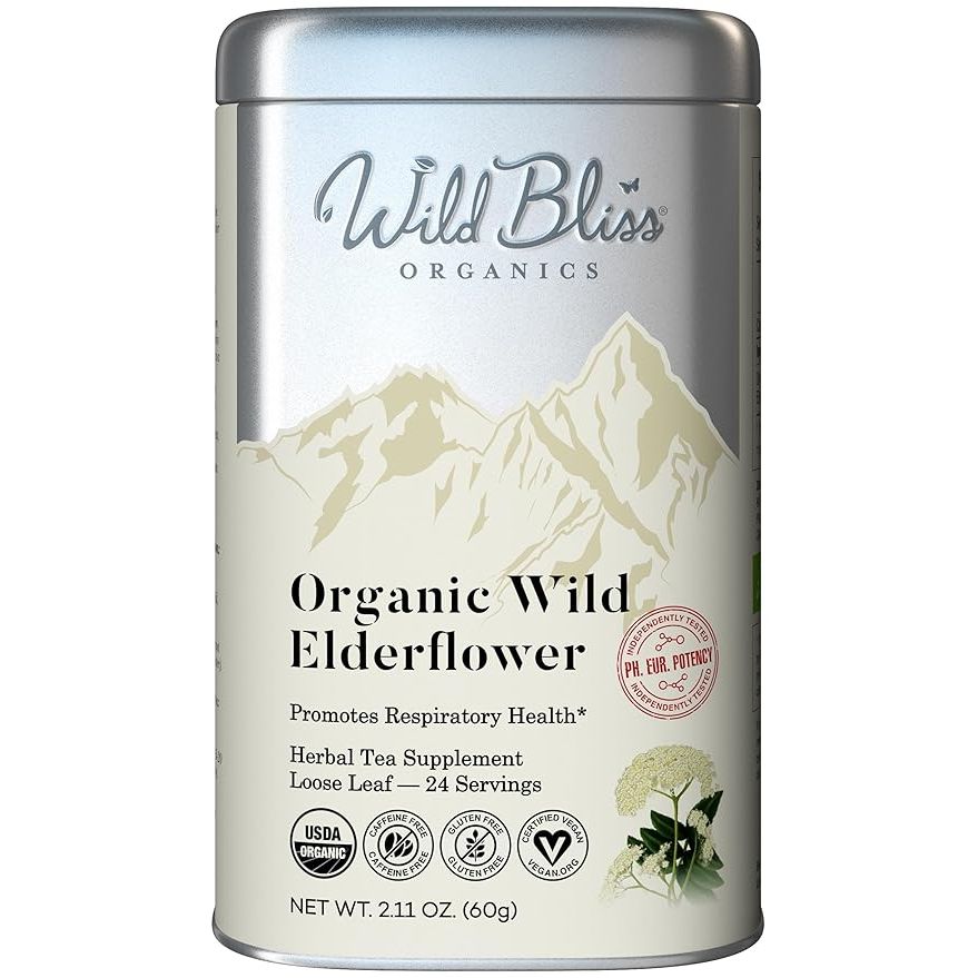 Wild Bliss Organic Elderflower Tea – Immune and Respiratory Support - Caffeine Free Loose Leaf Elder Flowers - 2.11 Ounces - 24 Servings