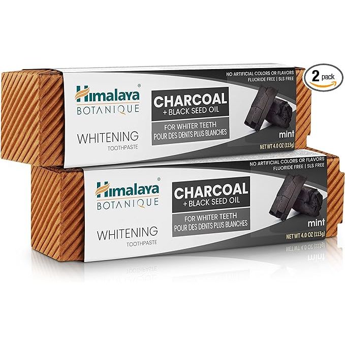 Himalaya Botanique Whitening Antiplaque Toothpaste with Charcoal + Black Seed Oil, Fluoride Free, for Whiter Teeth, 4 oz, 2 Pack