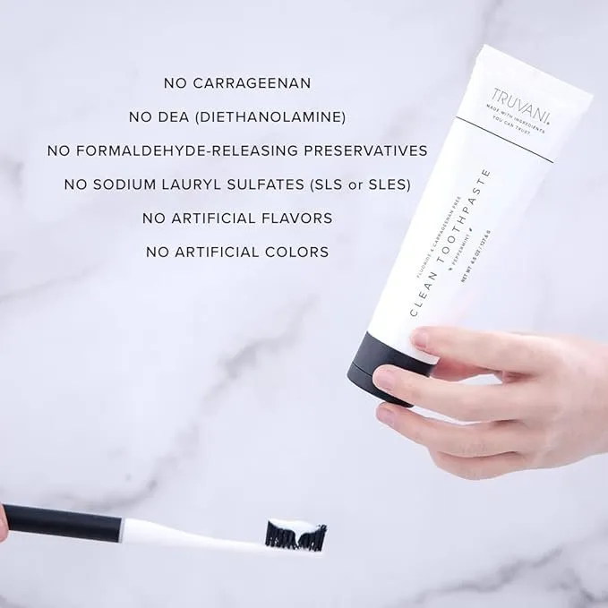 Truvani Clean Fluoride-Free Toothpaste offers a natural and effective way to maintain oral health without the use of fluoride or synthetic chemicals. Designed for those seeking a clean and holistic approach to dental care, this toothpaste features carefully selected organic ingredients that gently clean teeth, fight bacteria, and freshen breath. Perfect for individuals looking to avoid fluoride and other potentially harsh substances, Truvani provides a gentle yet powerful alternative for daily oral hygiene. To use Truvani Clean Fluoride-Free Toothpaste effectively, brush your teeth twice daily for at least two minutes each time. For best results, apply a pea-sized amount of toothpaste to a soft-bristled toothbrush and brush in a circular motion, making sure to cover all surfaces of your teeth and gums. A helpful tip is to pair it with a regular flossing routine to ensure the removal of food particles and plaque between teeth, enhancing overall oral health and freshness. Truvani stands out for its commitment to using clean, natural ingredients while avoiding fluoride and artificial additives. Their toothpaste is formulated with organic components that support enamel health and promote a naturally clean mouth. By choosing Truvani, you’re opting for a product that aligns with a holistic approach to wellness, ensuring you maintain optimal oral health with a minimal environmental footprint. Their dedication to quality and purity makes their toothpaste a top choice for anyone seeking a natural alternative to conventional dental care products.