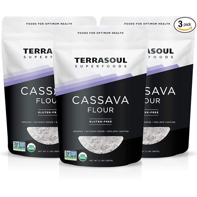 Terrasoul Superfoods Organic Cassava Flour is a gluten-free alternative to traditional wheat flour. It is made from the dried and ground root of the cassava plant, also known as yuca. This flour has a smooth texture and can be used in a variety of baked goods, such as bread, cookies, and pancakes.