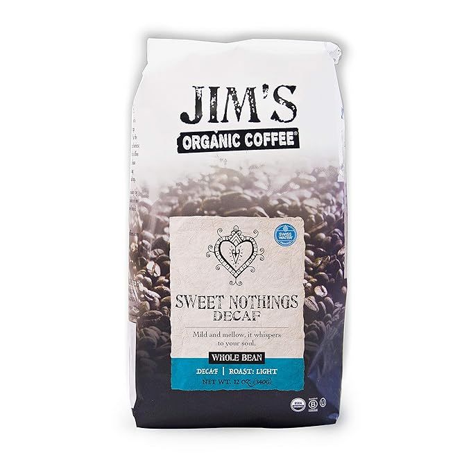 Jim’s Organic Coffee – Sweet Nothings Decaf – Light Roast, Whole Bean, 12 oz Bag