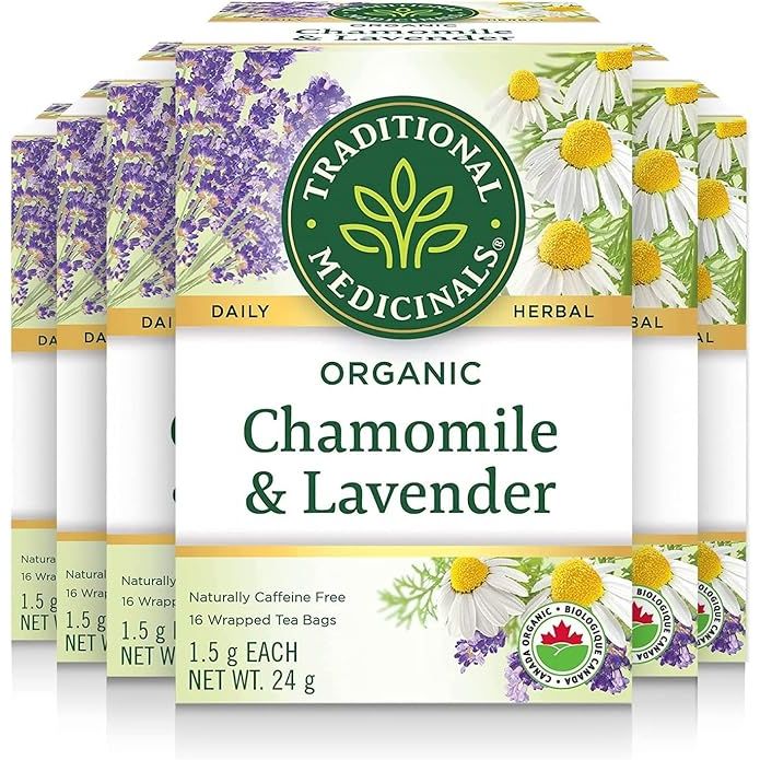 Traditional Medicinals - Organic Chamomile with Lavender Herbal Tea (Pack of 6) - Soothing blend containing Lemon Balm - 96 Tea Bags Total