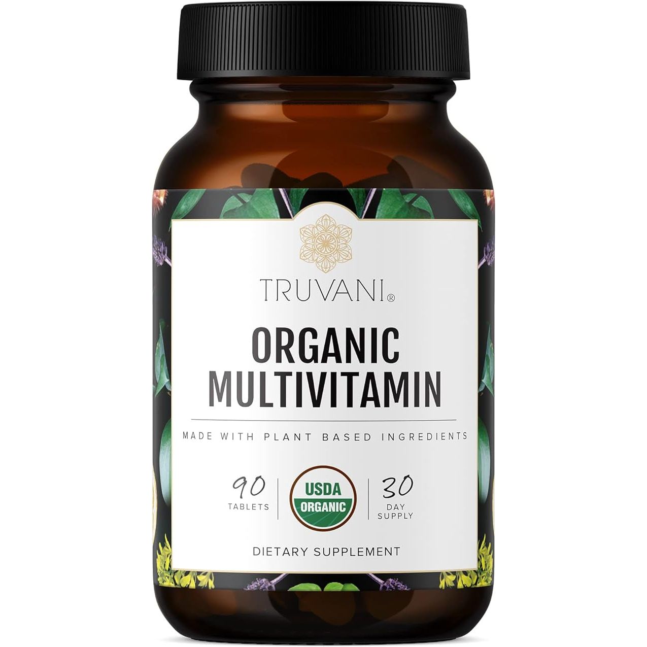 Truvani Daily Organic Multivitamin Supplement - Vegan, Non GMO Tablets with Iron & Biotin - Dairy, Soy, & Gluten Free - 30 Day Supply (90 Tablets)