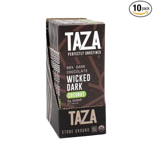 Taza Chocolate Organic Amaze Bar 95% Stone Ground, Wicked Dark with Toasted Coconut, 2.5 Ounce (10 count)