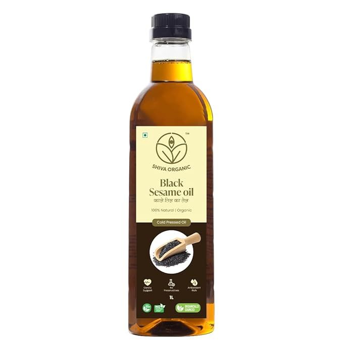 Shiva Organic Cold-Pressed Black Sesame Oil - 100% Natural, Certified Organic - 1L (33.8 fl oz) for Cooking, Dressings, and Health