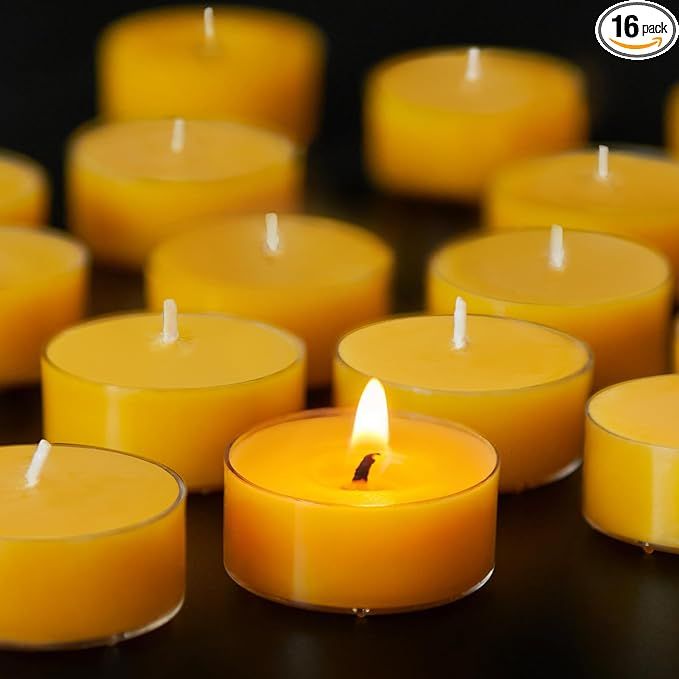 16pcs Natural Beeswax Tealight Candles - Pure Beeswax Tea Lights Candles 4 Hour Burn Time Tea Candles Honey Scent Smokeless Clean Burning Beeswax Candles for Spa,Yoga