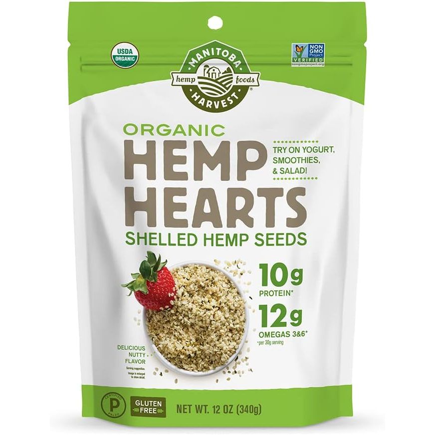 Organic Hemp Hearts, 12oz; 10g Plant Based Protein and 12g Omega 3 & 6 per Srv | Smoothies, yogurt & salad | Non-GMO, Vegan, Keto, Paleo, Gluten Free | Manitoba Harvest