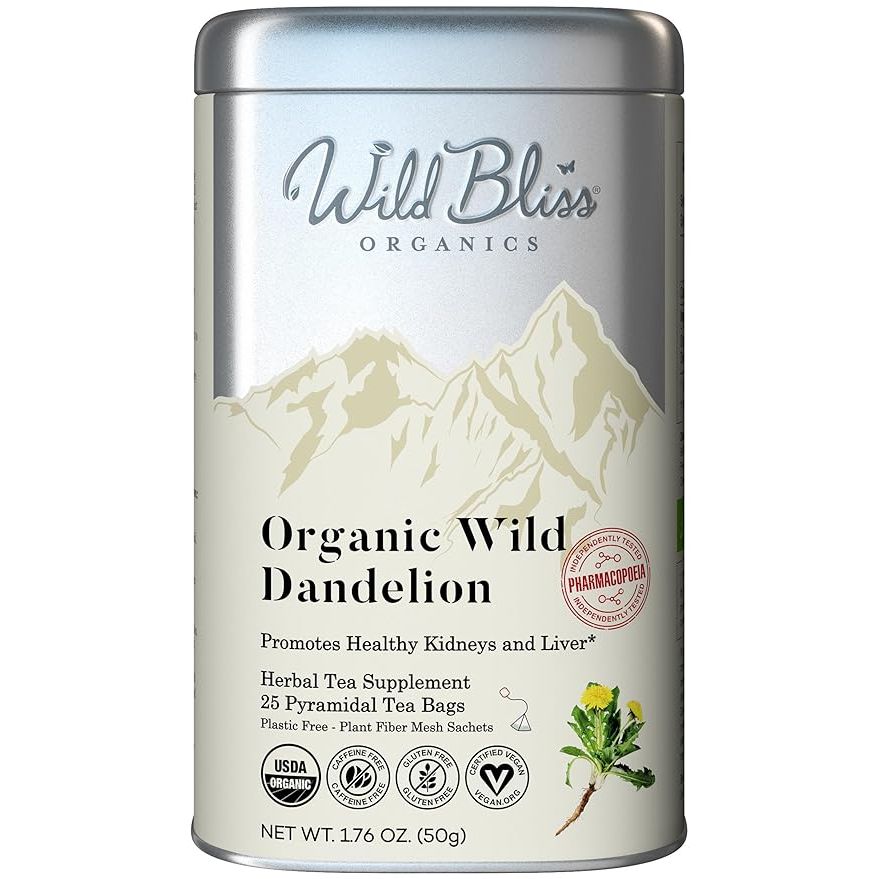 Organic Wild Raw Dandelion Root Tea - Caffeine Free Herbal Detox Support - 25 Plant Based Tea Bags