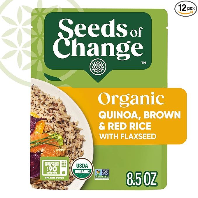 Seeds Of Change Organic Quinoa, Brown & Red Rice with Flaxseed, Good Source of Fiber, No Artificial Ingredients or Preservatives, Vegetarian Friendly, USDA Certified Organic, Non-GMO, 8.5 Ounce (Pack of 12)