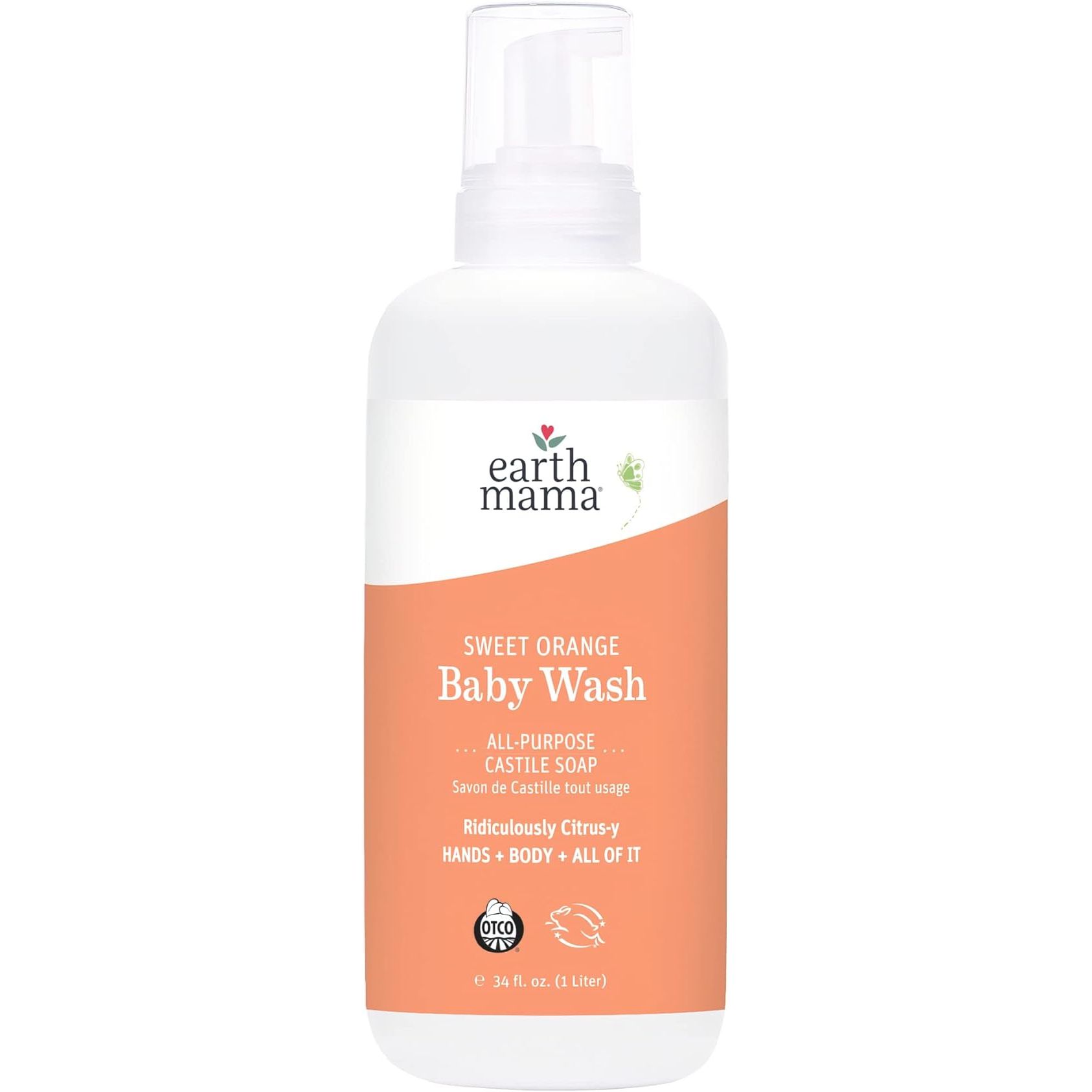 Earth Mama Sweet Orange Baby Wash Liquid Foaming Hand Soap Refill, Organic All Purpose Body Wash for Sensitive Skin, Castile Soap with Coconut Oil, Shea Butter, Calendula, & Aloe, 34 fl oz