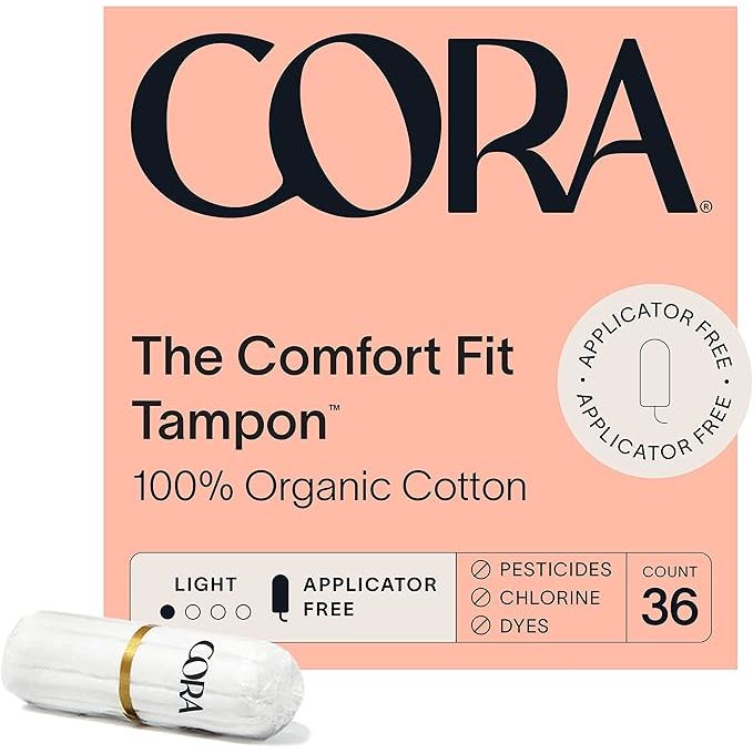 Cora 100% Organic Cotton Non-Applicator Tampons | Ultra-Absorbent, Unscented, Natural, Non-Toxic, Applicator Free | Eco-Conscious (36 Light Tampons)