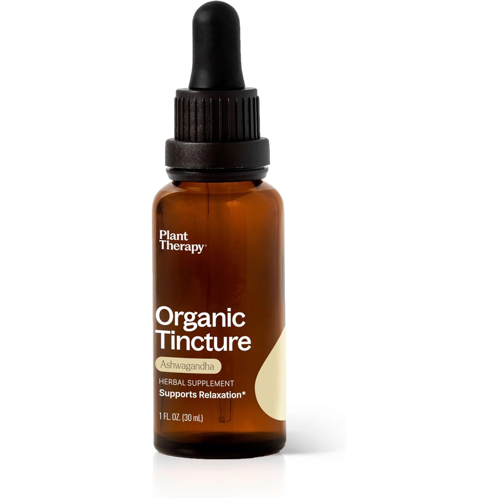 Plant Therapy Organic Ashwagandha Root Herbal Supplement Tincture 30 mL (1 oz) Supports Relaxation, Rejuvenating & Immune Supporting, Vegan, Non GMO, Gluten Free, Liquid, 1 bottle