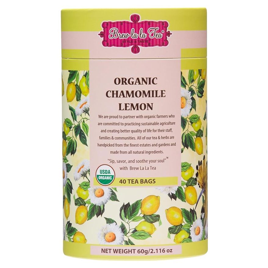 Brew La La Organic Chamomile Lemon Green Tea is a refreshing blend of organic green tea infused with the calming properties of chamomile and a hint of zesty lemon. This tea comes in a convenient canister containing 40 double chambered tea bags, making it easy to enjoy a delicious cup anytime. Brew La La Tea is low in caffeine, making it a perfect choice for those looking for a mild pick-me-up without the jitters.