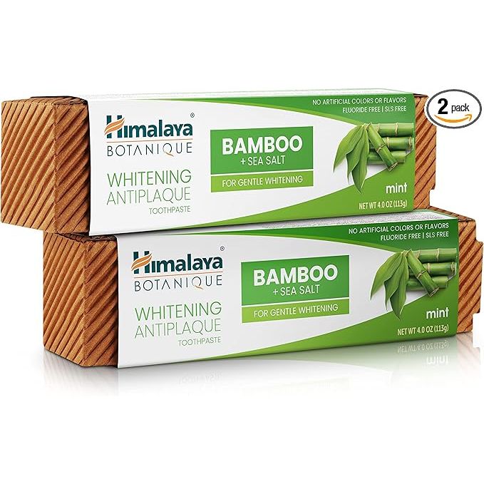 Himalaya Botanique Whitening Antiplaque Toothpaste with Bamboo + Sea Salt, Fluoride Free, for Gentle Whitening, 4 oz, 2 Pack