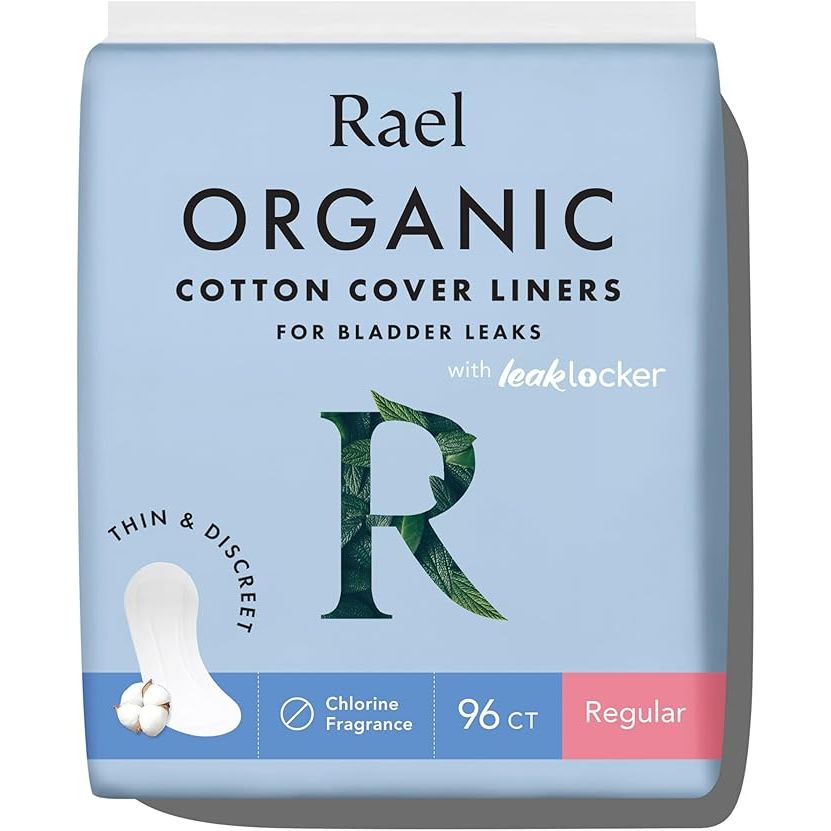 Rael Incontinence Liners for Women, Organic Cotton Cover - Postpartum Essential, Regular Absorbency, Bladder Leak Control, 4 Layer Core with Leak Guard Technology, (Regular, 96 Count)