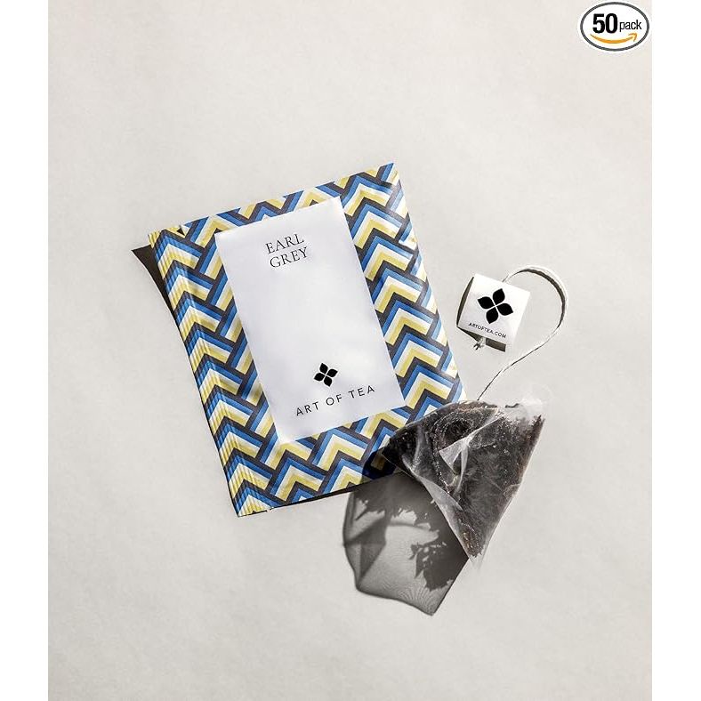 Art of Tea | Organic Earl Grey Black Tea | Earl Grey Tea Bag | 50 Eco Friendly Pyramid Black Tea Bag Sachets