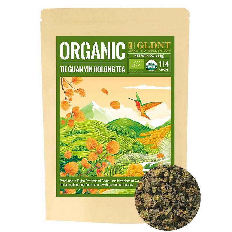 GLDNT Organic Oolong Tea Loose Leaf, Anxi Tie Guan Yin, High Mountain Iron Goddess of Mercy, Smooth Taste, 4oz