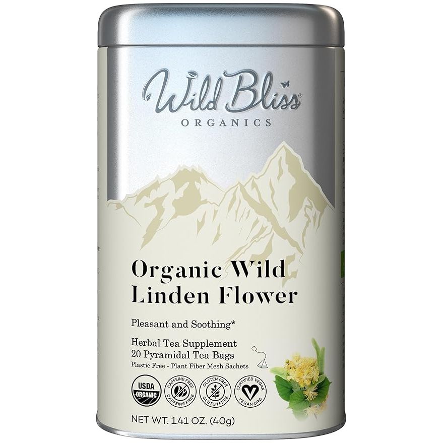 Wild Bliss Organic Linden Flower Herbal Tea - Caffeine Free Tisane - 20 Plant Based Tea Bags