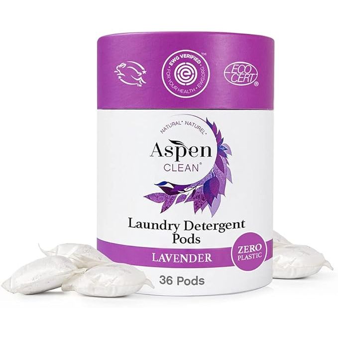 AspenClean's Lavender Laundry Pods are a convenient and eco-friendly option for cleaning your clothes. The pods come in a new and improved packaging that is zero plastic, making them a more sustainable choice for your laundry needs. These laundry pods are also EWG Verified™, meaning they meet strict standards for environmental health and safety.