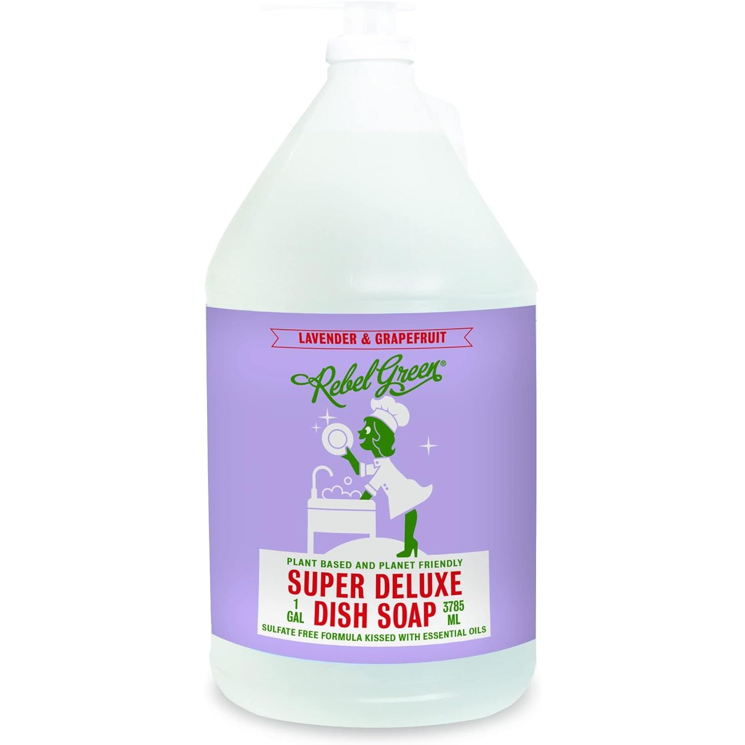 Rebel Green Super Deluxe Dish Soap - Natural Kitchen Dish Detergent - Gentle Dish Liquid Scented with Lavender & Grapefruit - (1 Gallon Refill Bottle)