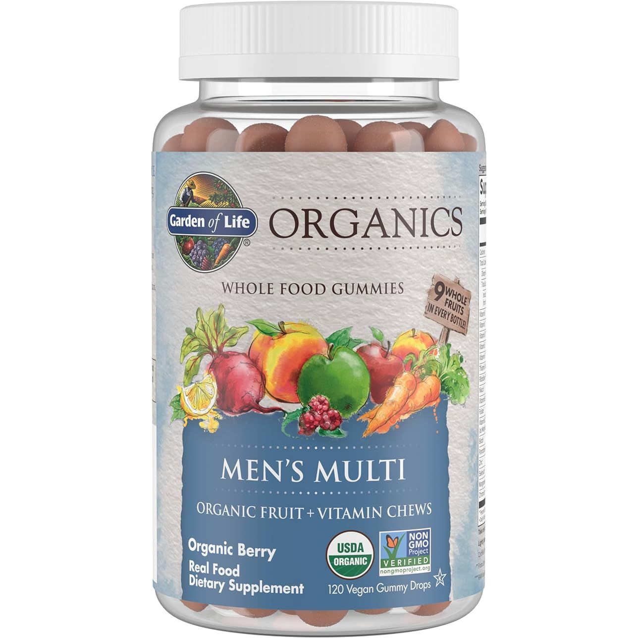 Garden of Life Organics Men's Gummy Vitamins - Berry - Certified Organic, Non-GMO, Vegan, Kosher Complete Multi - Methyl B12, C & D3 - Gluten, Soy & Dairy Free, 120 Real Fruit Chew Gummies