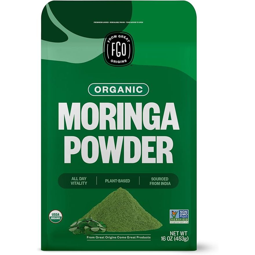 FGO Organic Moringa Oleifera Leaf Powder, from India, 16oz, Packaging May Vary (Pack of 1)