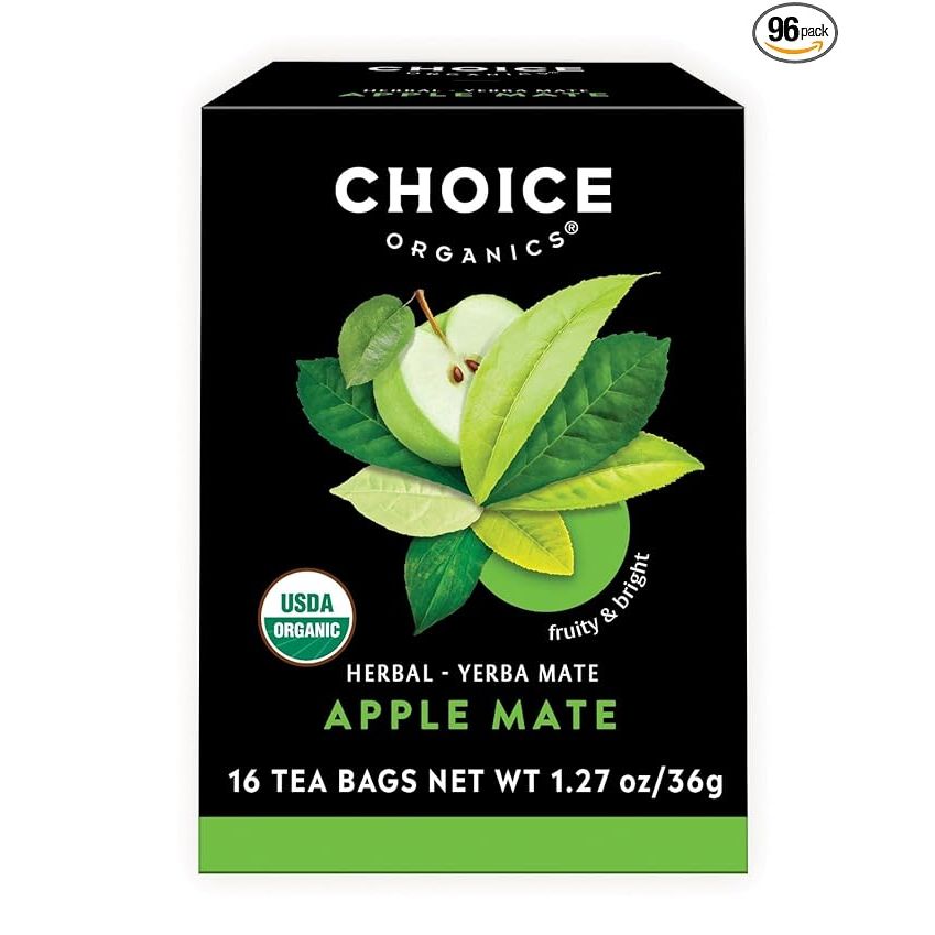 Choice Organics - Organic Apple Mate Tea (6 Pack) - Compostable - Contains Caffeine - 96 Organic Yerba Mate Tea Bags