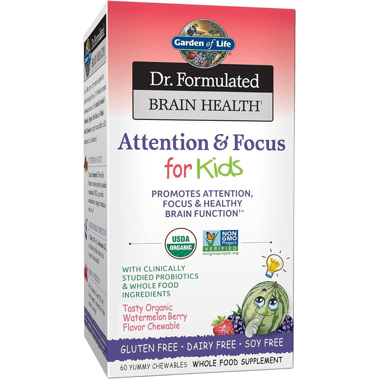 Garden of Life Dr. Formulated Attention and Focus for Kids, Supplement Promotes Healthy Brain Function, Concentration with Organic Wild Blueberry, Pine Bark, Vitamin C, D and Probiotics, 60 Count