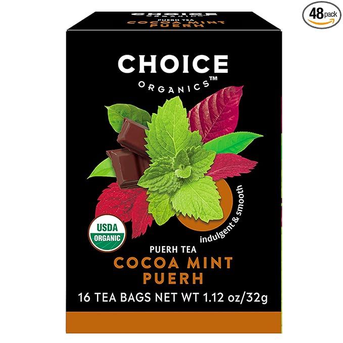 Choice Organics - Organic Cocoa Mint Puerh Tea (3 Pack) - Organic Puerh Tea - 48 Tea Bags