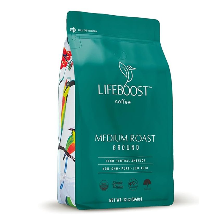 Lifeboost Coffee Ground Medium Roast Coffee - Low Acid Single Origin USDA Organic Coffee - Non-GMO Ground Coffee Third Party Tested For Mycotoxins & Pesticides - 12 Ounces