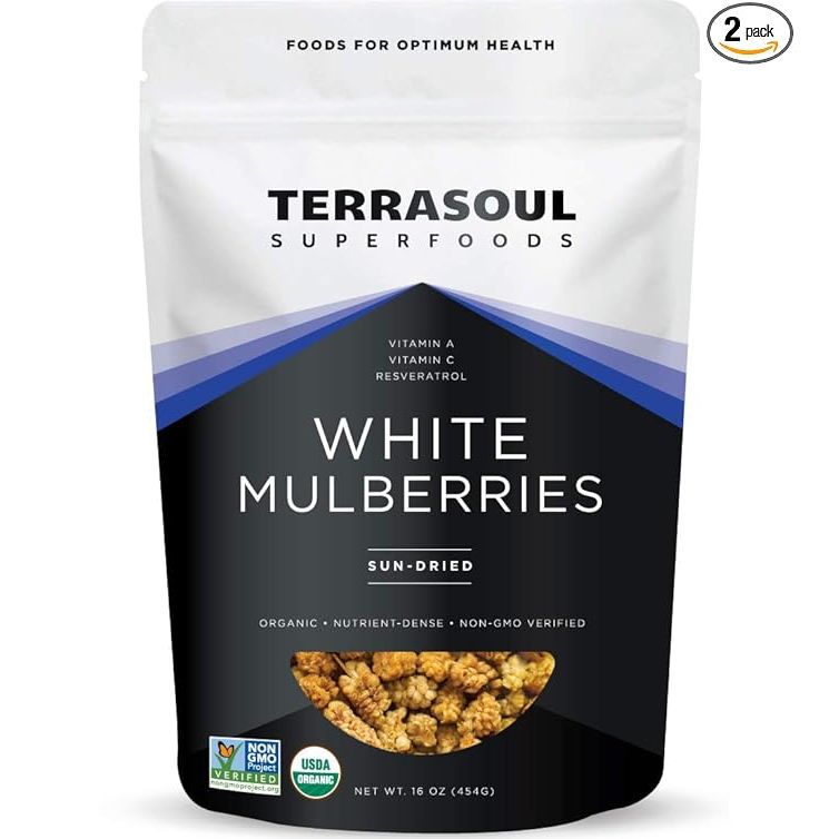 Terrasoul Superfoods Organic Sun-dried White Mulberries, 2 Lbs (Pack of 2), Sweet Superfood Snacking, Smoothie Booster, and Nutrient-Packed Yogurt Topping