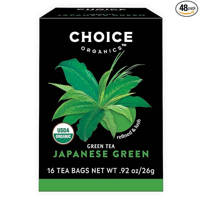 Choice Organics offers a 3-pack of Organic Japanese Green Tea that is made with organic ingredients, and each pack contains 48 compostable green tea bags. This green tea is sourced from Japan and contains caffeine, making it a perfect option for those looking for a natural energy boost.