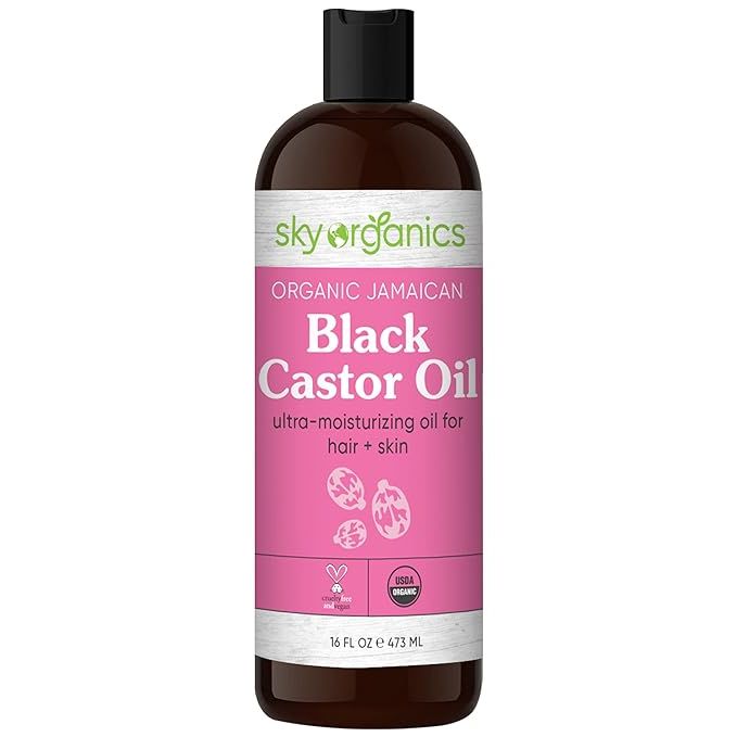 Sky Organics Organic Black Castor Oil for Hair & Skin, 100% Pure & Cold-Pressed USDA Certified Organic to Moisturize, Nourish & Soften, 16 fl. Oz